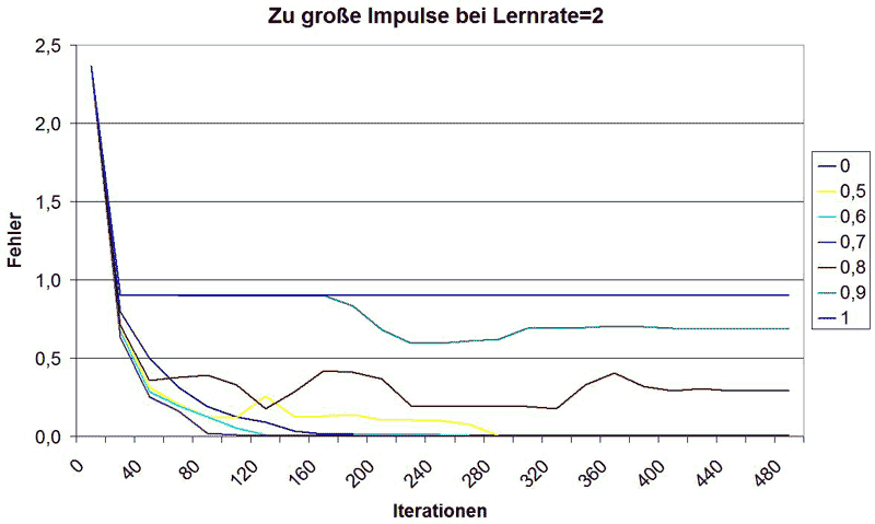Ergebnissen führen. Für mich war für dieses Problem erkennbar, dass bei einer Lernrate von 2 ein Impulsterm von 0.4